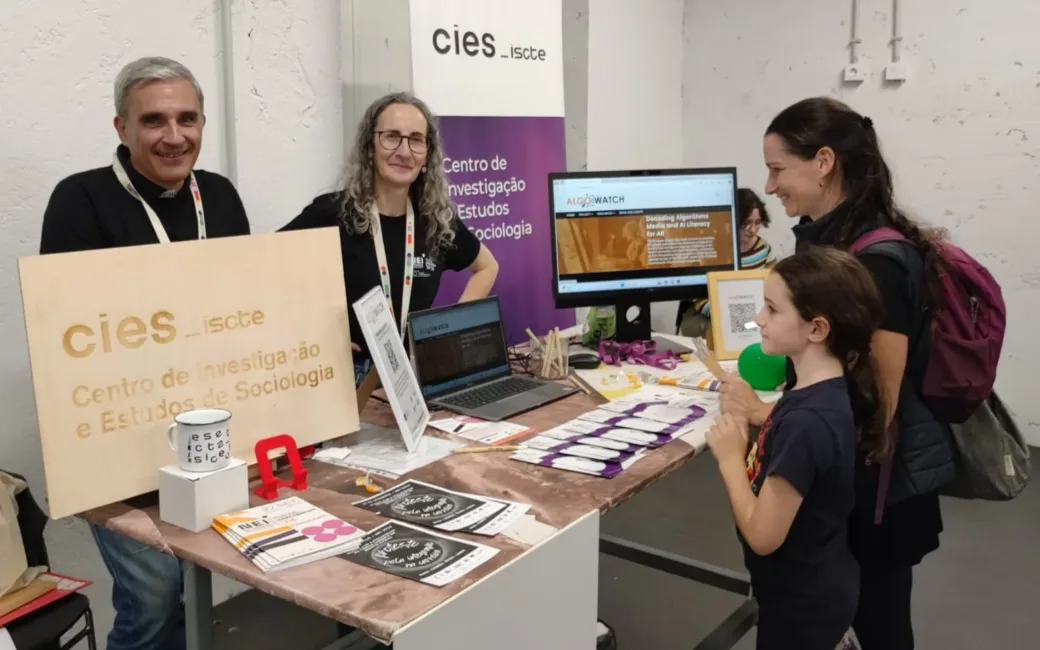 The Algowatch project hosted an interactive activity titled “Challenges with Algorithms” during the European Researchers’ Night, on September 27th, at the Botanical Garden in Lisbon. From 8:00 PM to 11:30 PM, researchers Vitor Tomé and Ana Pinto Martinho engaged with approximately 100 visitors at the stand of the Research Centre for Sociology Studies at ISCTE.