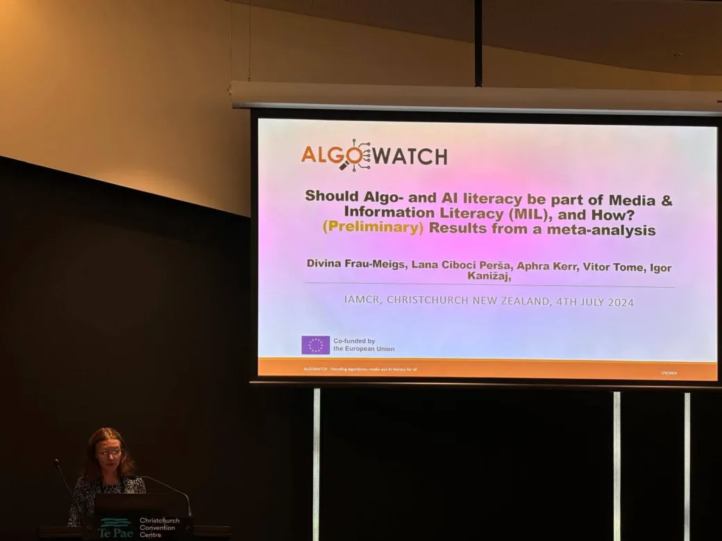 Prof Aphra Kerr from Maynooth University, Ireland, presented a paper titled ‘Should Algo- and AI literacy be part of Media & Information Literacy (MIL), and How? (Preliminary) Results from a meta-analysis’ to the Media Education section at the International Association for Media and Communications Research conference in Christchurch New Zealand on the 4th of July, 2024.
