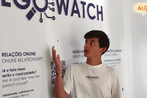 A group from the Portuguese school AE Ferreira de Castro visiting the Algowatch exhibition at the NewsMuseum in Sintra, Portugal.